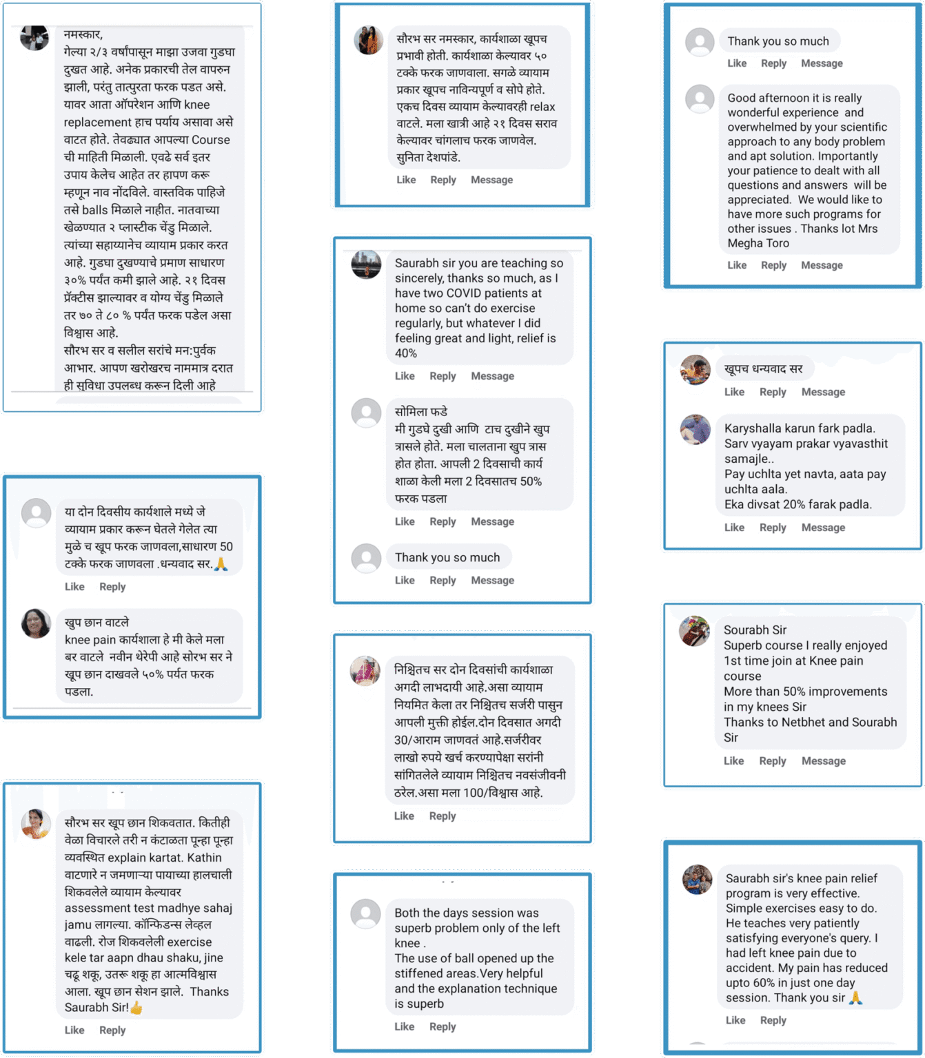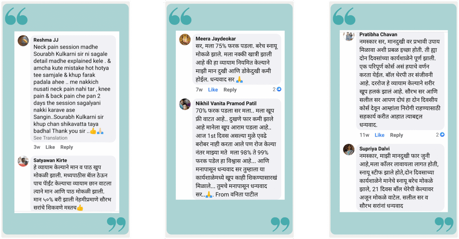 या उपचारात काही सोपे व्यायाम प्रकार आहेत जे आम्ही ऑनलाईन zoom च्या माध्यमातून live शिकवितो आणि करून घेतो.